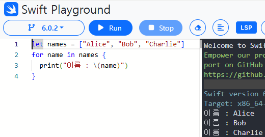 반복 횟수가 정해져 있다면? -> for-in 문 사용